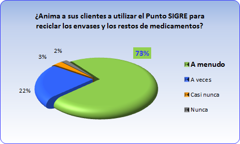 Los resultados del sondeo ratifican, un año más, el compromiso de los farmacéuticos con esta iniciativa socio-sanitaria y medioambiental: el 95% de ellos asesora y anima al ciudadano para que colabore correctamente en el reciclado de los envases y los restos de medicamentos.