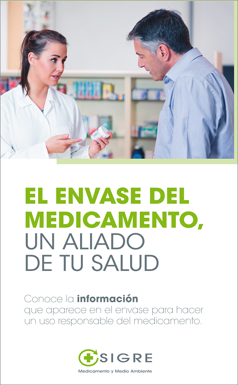 Entre la información relevante se incluye el símbolo SIGRE que aparece en el exterior del envase y la leyenda medioambiental que contiene el prospecto para advertir a los ciudadanos de que deben desprenderse de los residuos de medicamentos y sus envases a través del Punto SIGRE de la farmacia.