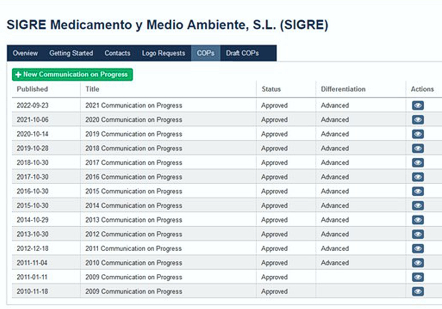 El Informe de Progreso 2021 de SIGRE ha alcanzado por duodécima vez consecutiva el GC Advanced Level (nivel avanzado), reservado a aquellas entidades que muestran un elevado grado de desempeño en sostenibilidad y que destacan en la manera de comunicar sus avances en el cumplimiento de los 10 Principios del Pacto Mundial.